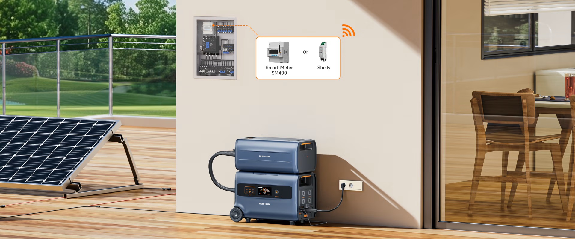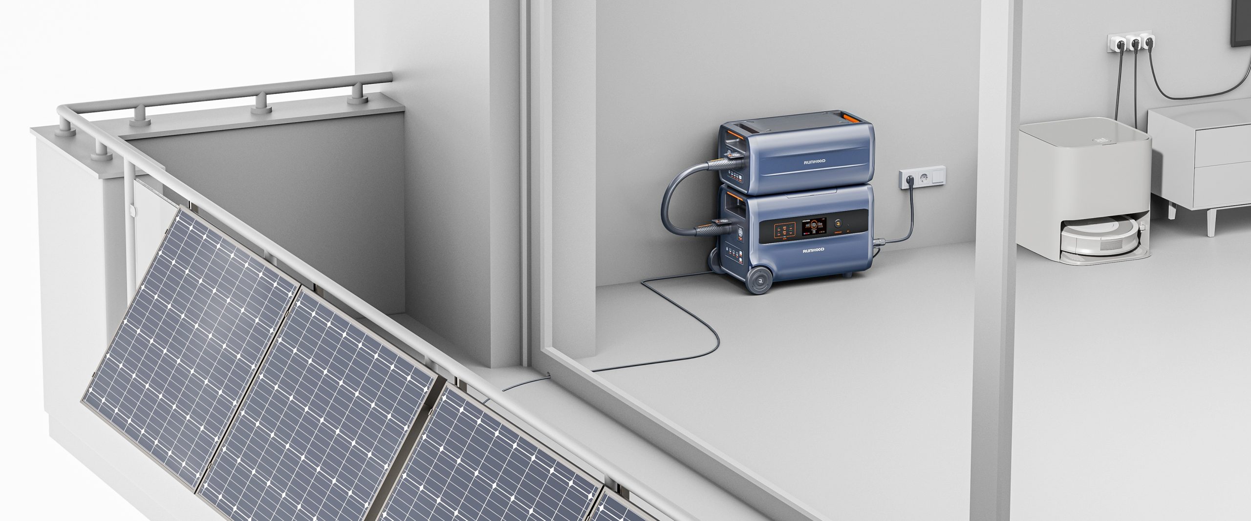 Runhood F2400 este o centrala fotovoltaica portabila All-in-One, o solutie completa care reuneste trei functii intr-un singur dispozitiv: centrala de balcon, statie de energie mobila si sistem de stocare pentru acasa.